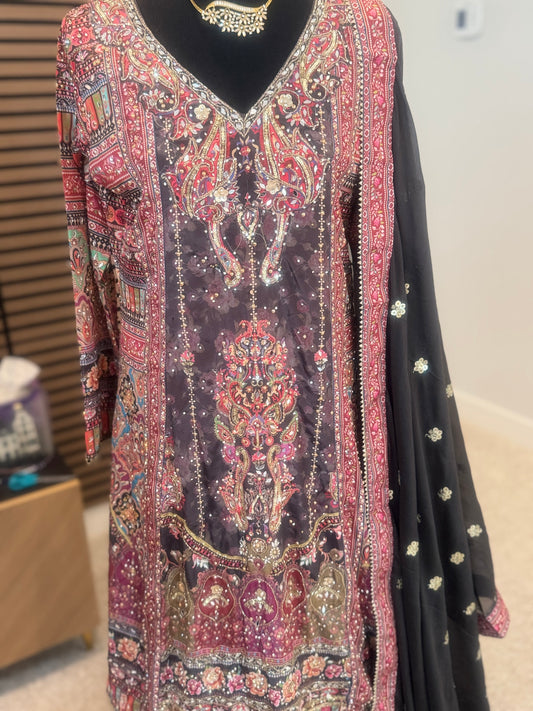 Black front cut anarkali with printed dupattaRegular price $150.00 CADRegular priceUnit price / per-